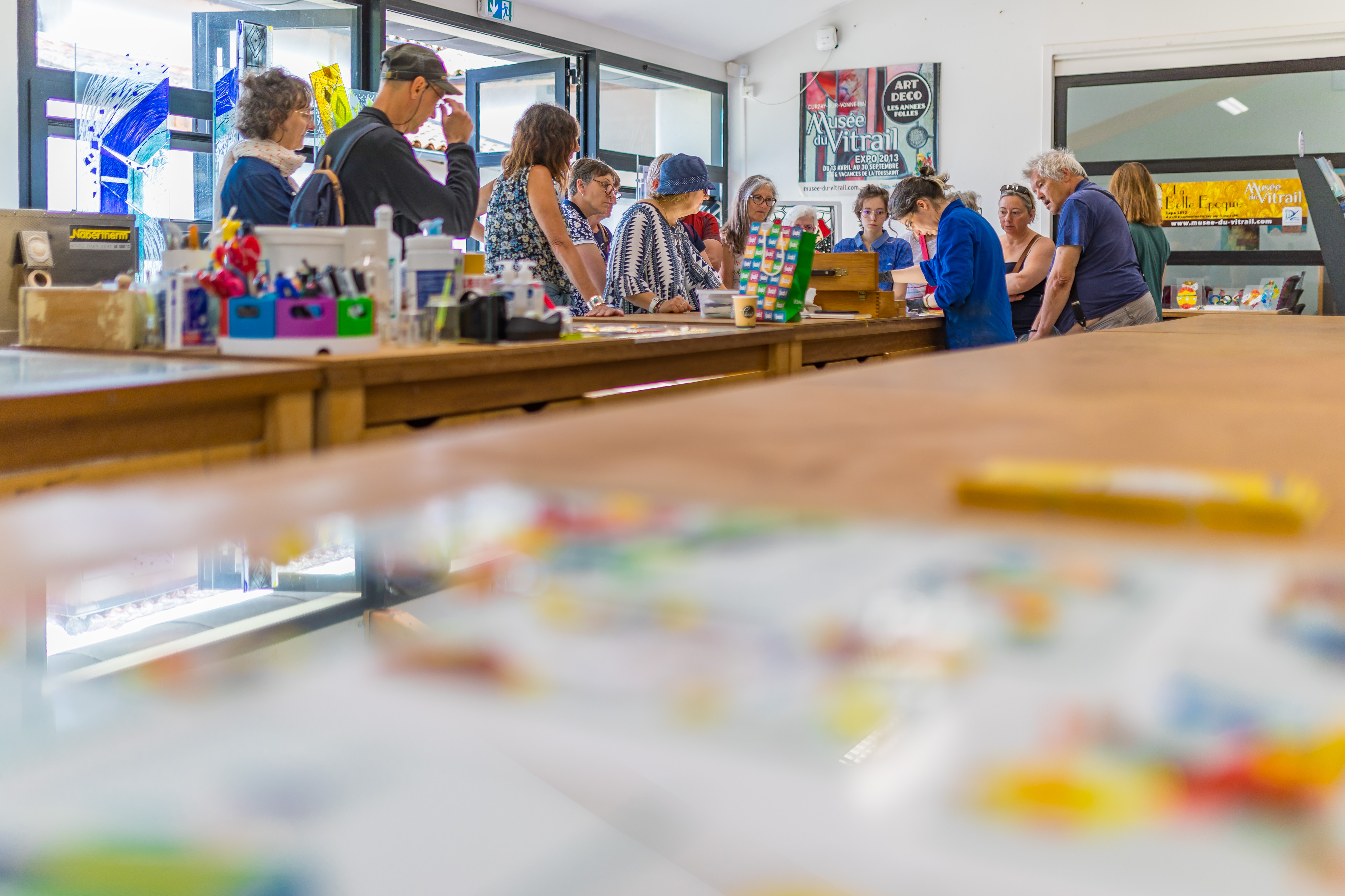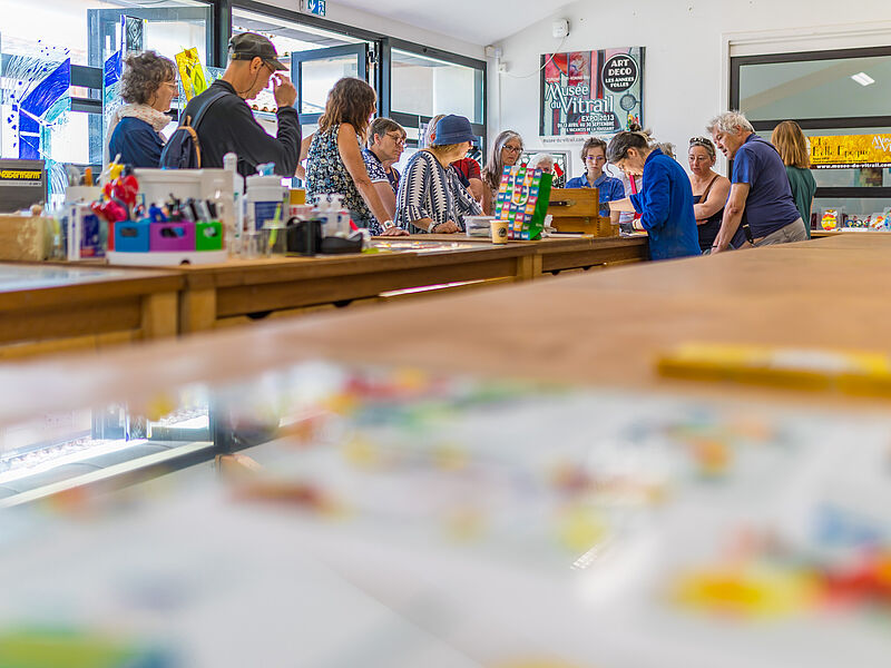 L'équipe du musée vous montrera la découpe de verre, le meulage, et le sertissage, et vous apprendra à sertir au ruban de cuivre une pièce de verre !